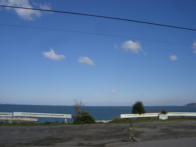 海が見えてきました。木更津あたりです。東京湾のような気がします。