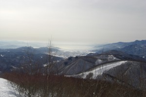 一夜明けて二日目です。他のコースを体験。すばらしい景色を見ることが出来ます。山の向こうに信濃大町ですね。