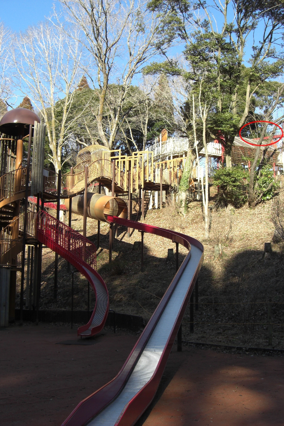 幼稚園児とかに交じって、「大きなお友達」が滑り台をすべり降りていく光景、シュールです。