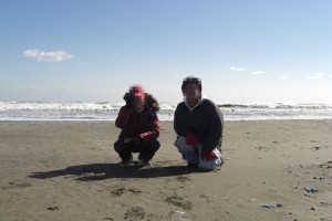 そして海に着きました。千葉横断です。荒れ狂う海の前で記念撮影。