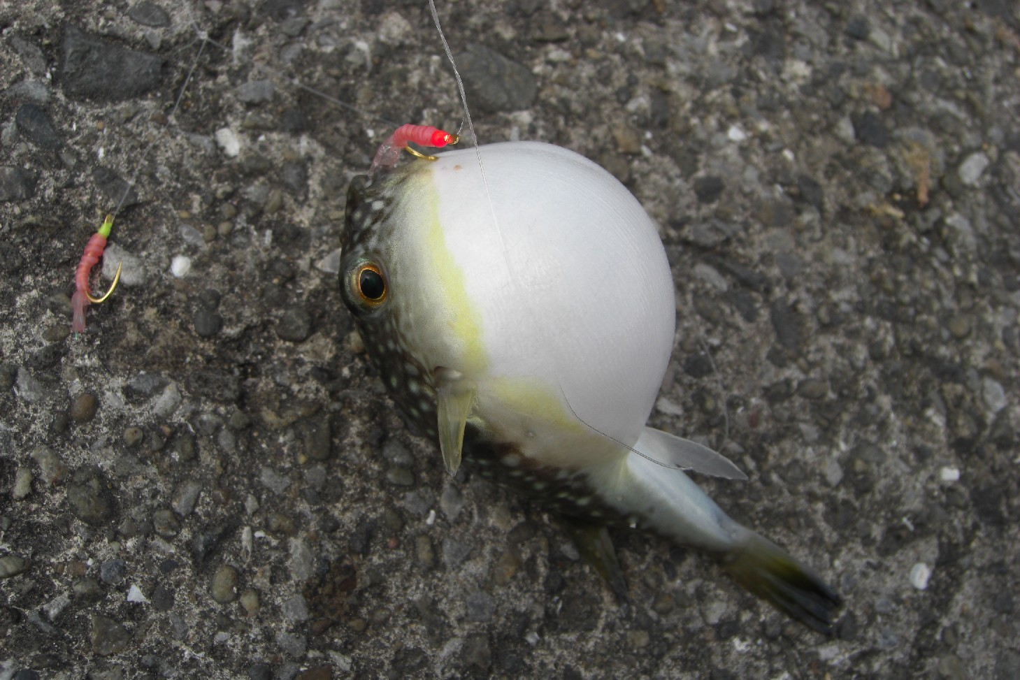 釣り上げたのは赤ちゃんフグです。さすがにフグを食う度胸はないので放流。