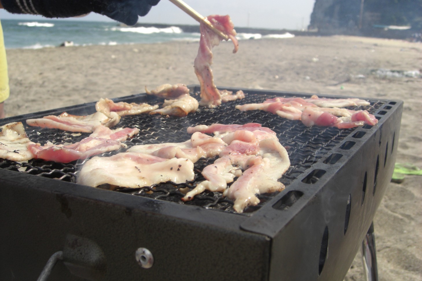 仕方ないので食糧を現地調達することをあきらめてBBQに移行。平日なだけあって浜にはほとんど人がいません。