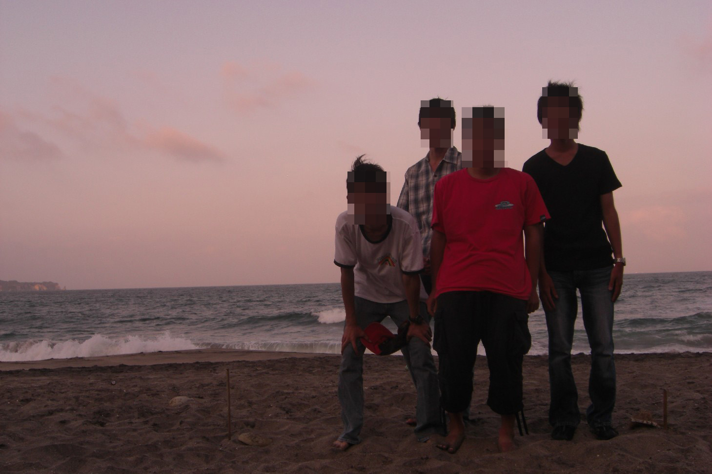 さて、さて、気づけば日が暮れ始めています。最後に海をバックに集合写真。