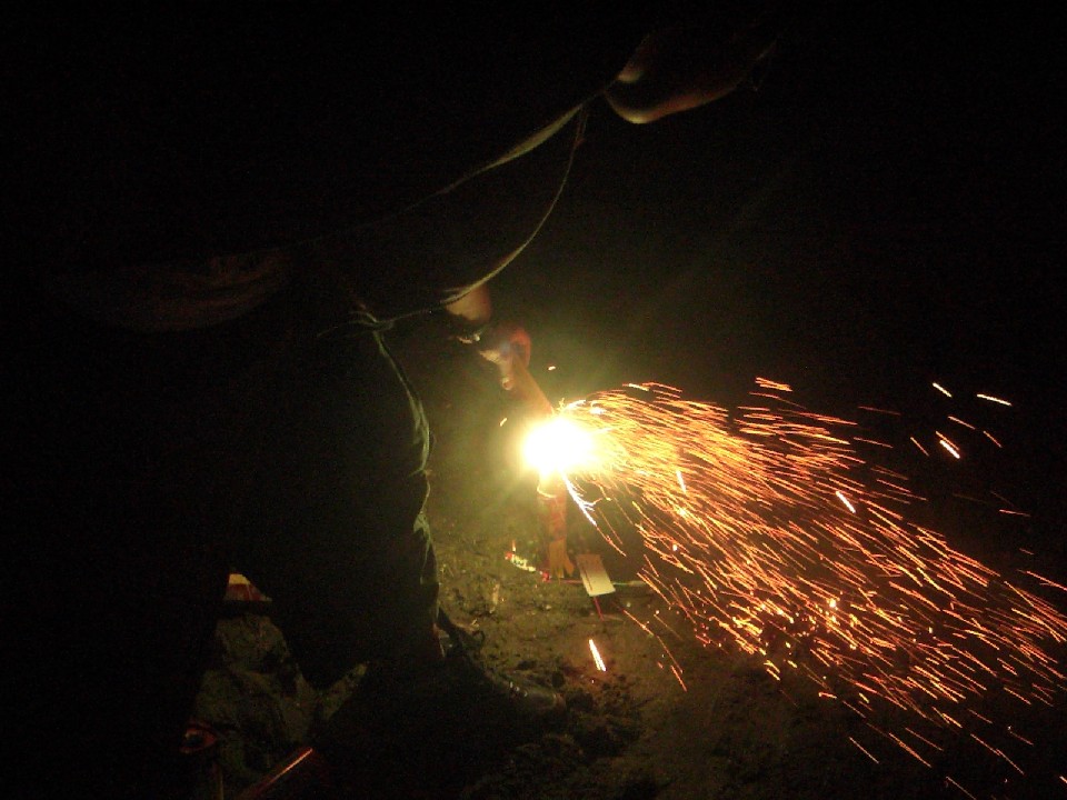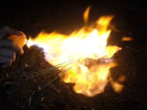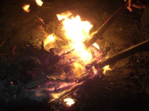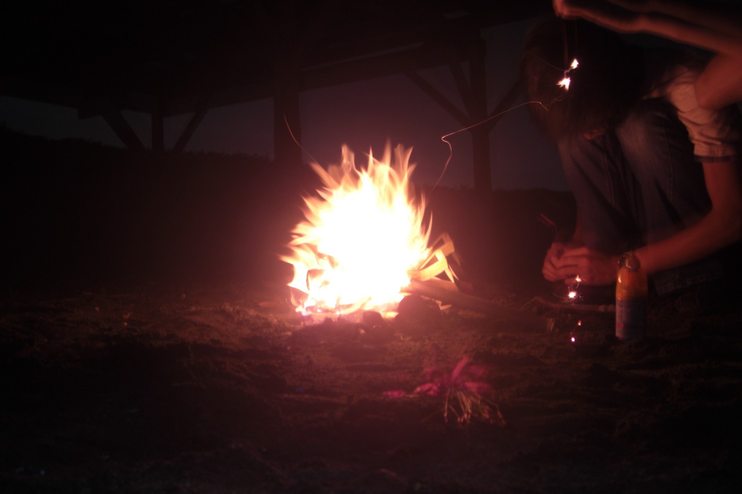 花火も終わったところで毎年恒例の薪です。右ではyutoと陣月が線香花火に挑戦しています。