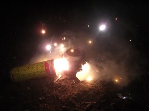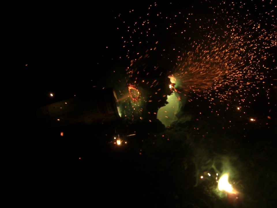 まだ空き缶に執着する我々です。なんか花火の使い方間違ってますよね。