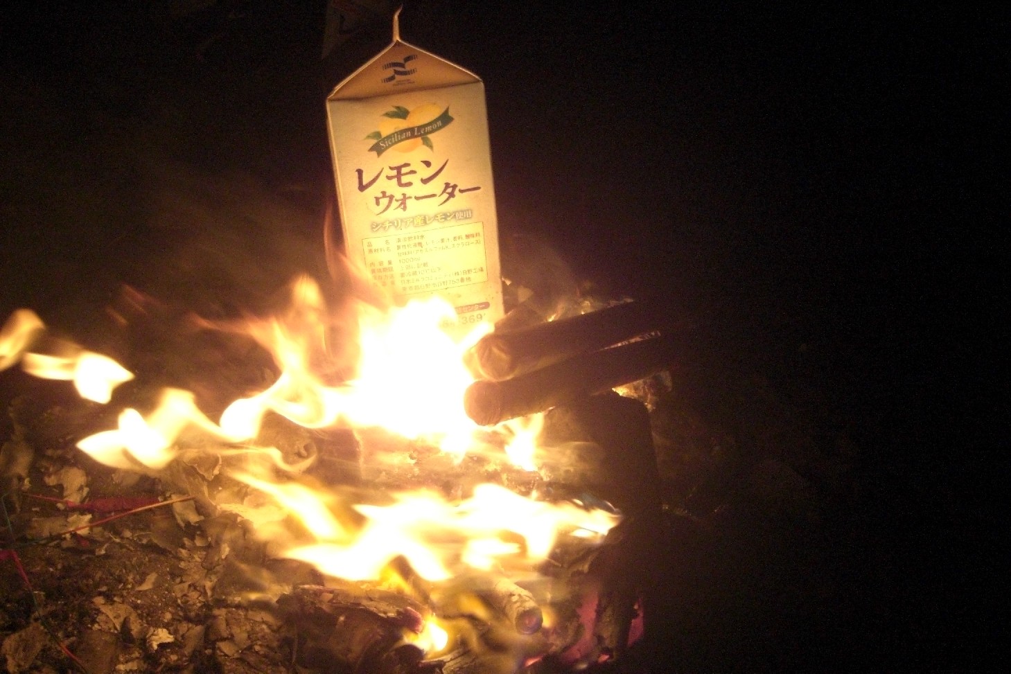 レモンウォーターを紙パックで沸かすことができるか実験。