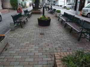 道路の真ん中は休憩出来るスペースとして使われています。ここから様々な交流が生まれると思うと目頭が熱くなりますね。