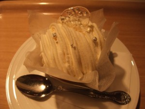 ホワイトモンブラン(480円)を購入して頂く。見た目がまさに雪を冠ったモンブランのような感じで、壮麗です。濃厚なチーズの味がして美味しかったことを記憶しています。
