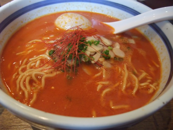 食した感想としては、麺が独特の縮れで好印象でした。前回行った沖縄そばと多少通じるところがあるかもしれません。そして、スープからは仄かなアーモンドの香りが!良く見ると、きちんとスライスしたそれが乗っかってたりします。