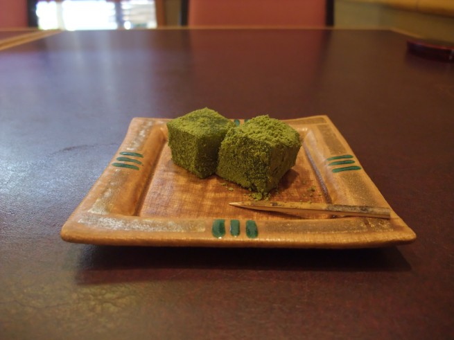 デザートには弾力のあるわらび餅が。抹茶が美しい。