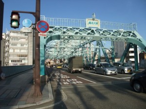 犀川大橋を渡り対岸へ向かう。