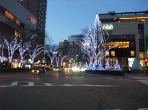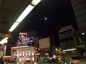 一気に夜の街化した香林坊の図。右手のアトリオで夕食その2を購入しておきます。