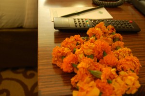 ホテルの置物。高級感にあふれてます。後ろに見える像は、幸せの神様であるガネーシャのもののようです。