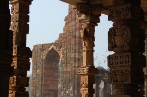ここから2日目。クトゥブ・ミナール観光です。奥に見える塔は今まで飛行機が2回突っ込んでいるとのこと・・・