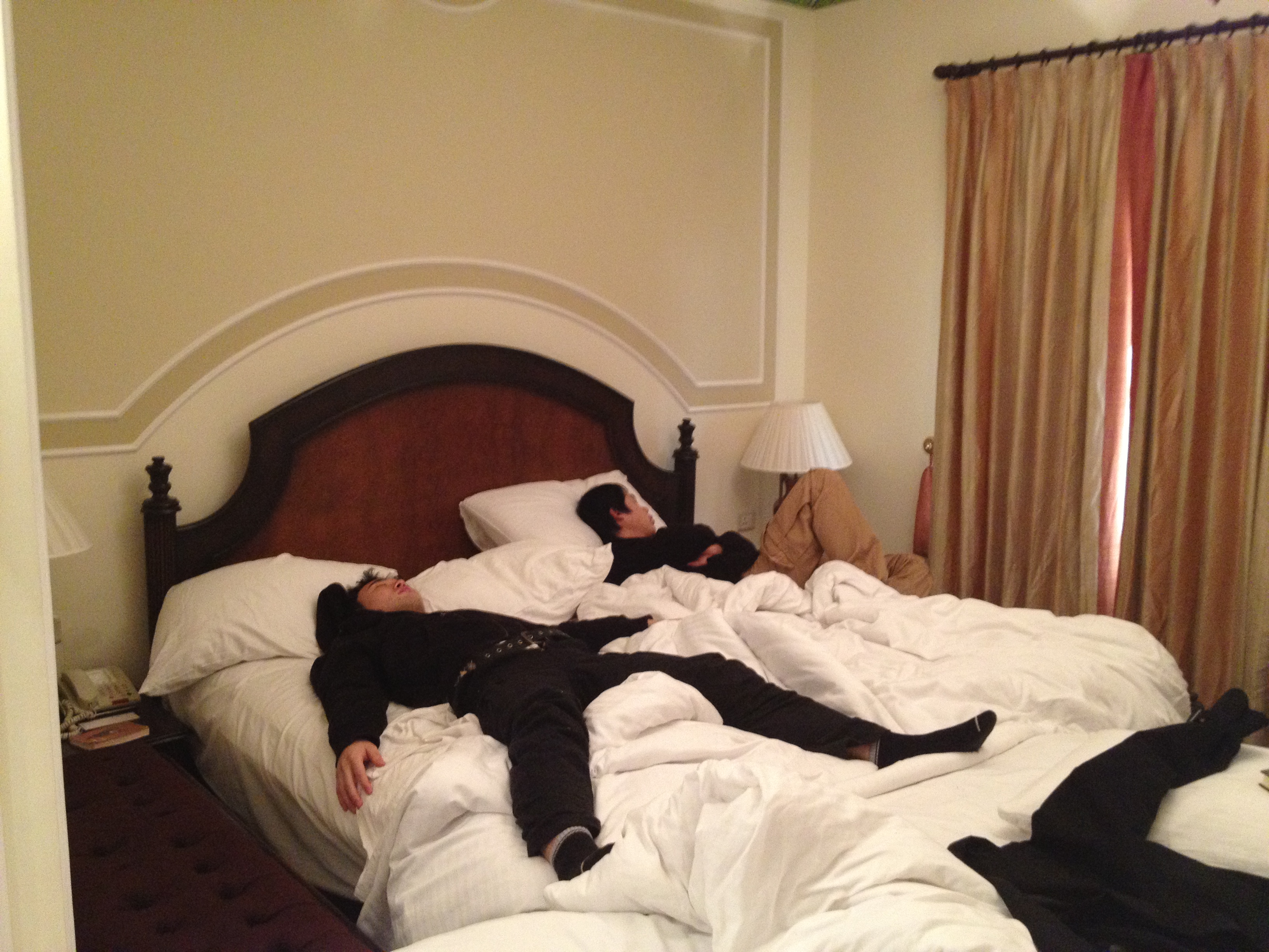 その後5時間ほど車に揺られまして、宿泊先のホテル到着です。待っていたのは・・・まさかのダブルベッド。