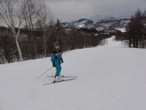 陣月は毎度のことながら短いスキー板で頑張っています。