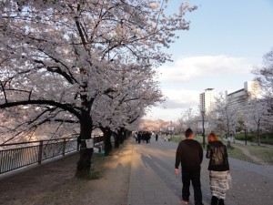 大阪城はこんな風にいたるところで桜が咲き誇りそこらへんでBBQをしながら桜を楽しむことができるわけですが、本当に楽しみ方はBBQで腹を満たした後の食後の散歩にあります!