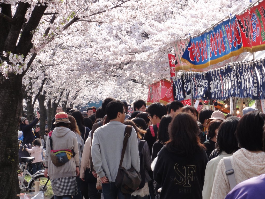 見ごろは多くの人でにぎわいます。屋台もたくさん出ています。
