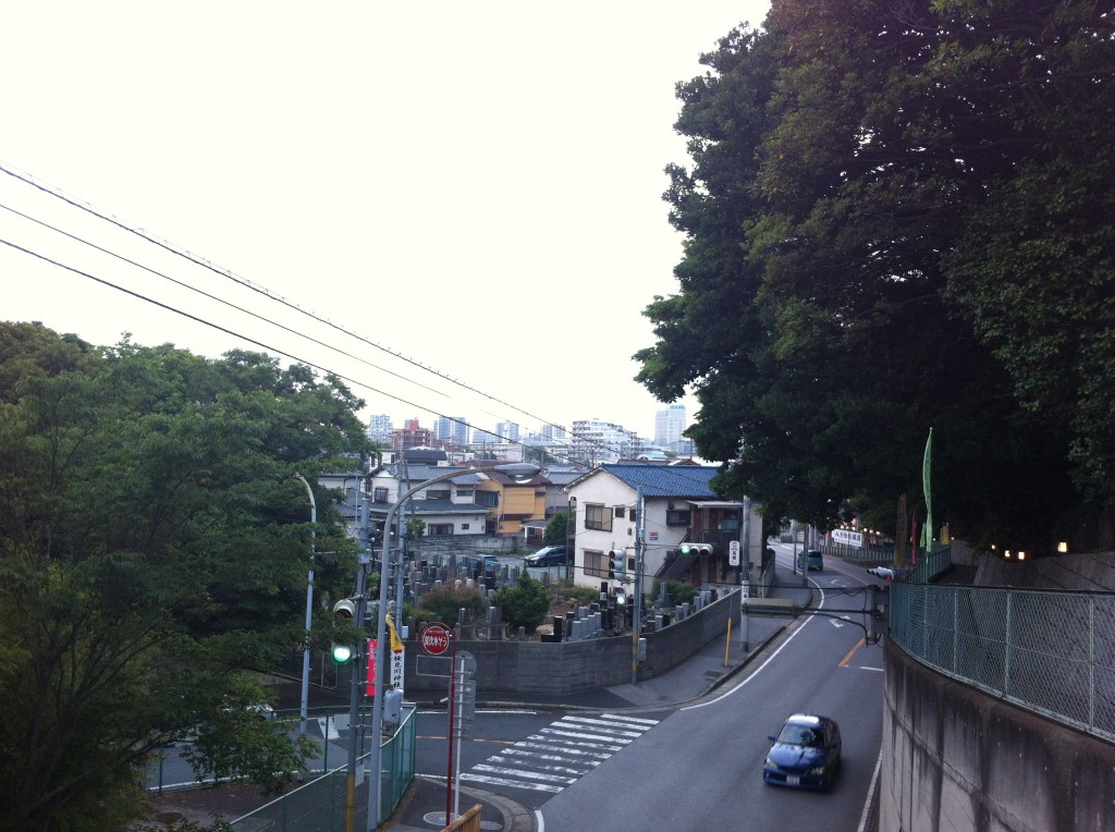 駅を出てすぐに向かったのは検見川神社。途中の高架から検見川の住宅街を見下ろすことができます。
