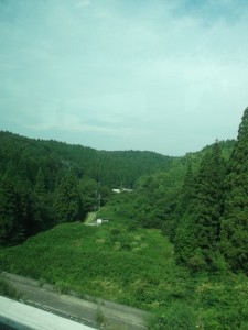 車窓から一枚、都会の喧騒を何も感じさせない緑が広がっています、隠遁したいですね。