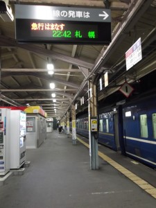 はまなすには座席の他に歓談スペースも用意されています。ここでhaku君と不問に付す結果に終わった地獄翌朝以降の日程について歓談しました。要するに、どこに行くのかも決めていなかったということですが、旅というのはそんなにカチカチに最初から旅程を決めてたら面白くないですからね。
