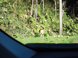 途中で野生生物(鹿と思われる)に遭遇しました。驚きですね、向こうも驚いてます。
