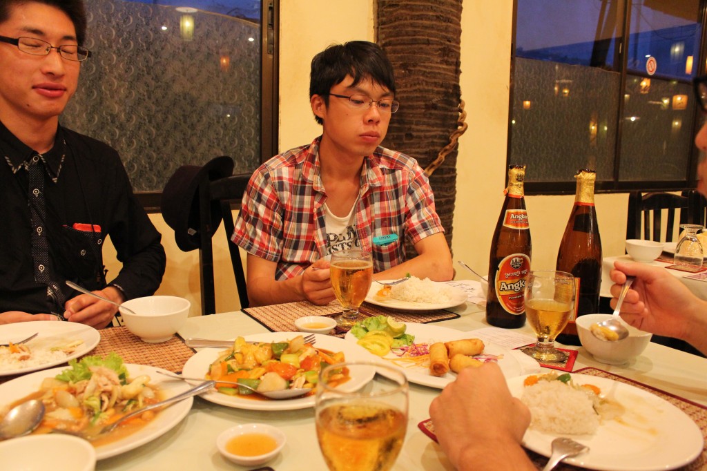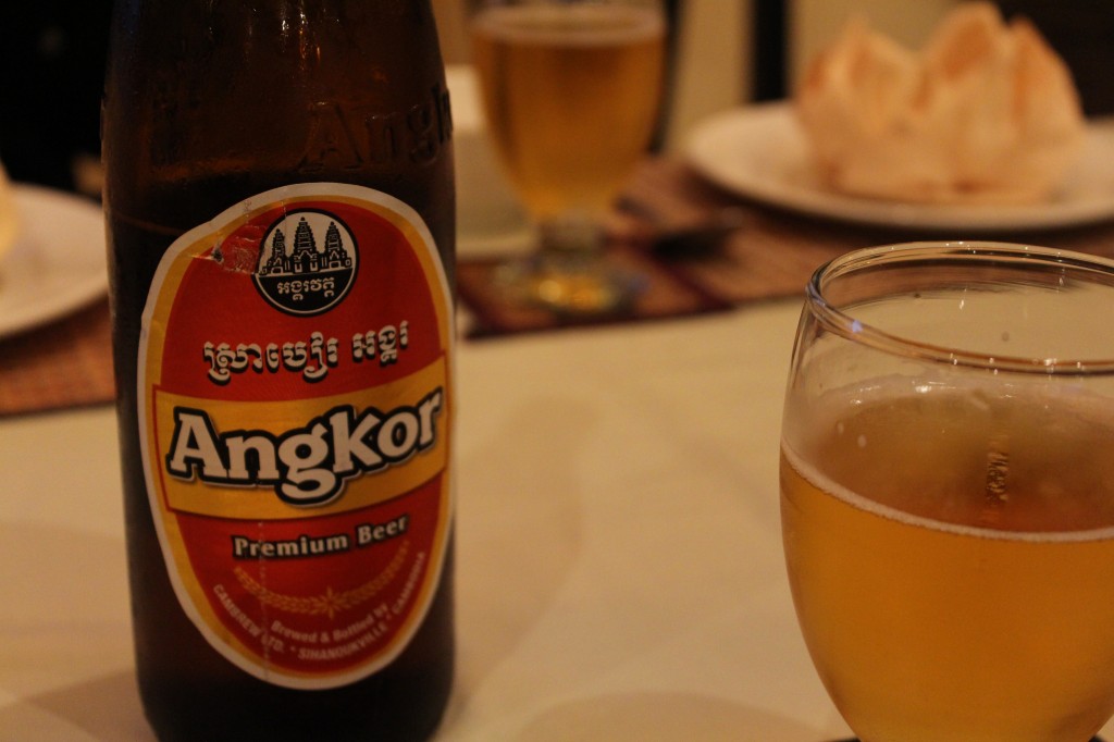すべてをすっ飛ばして突然のカンボジア到着です。上の写真はシェムリアップ到着後すぐの夕食で、初めてアンコールビールに出会った記念すべき瞬間を収めた一枚。