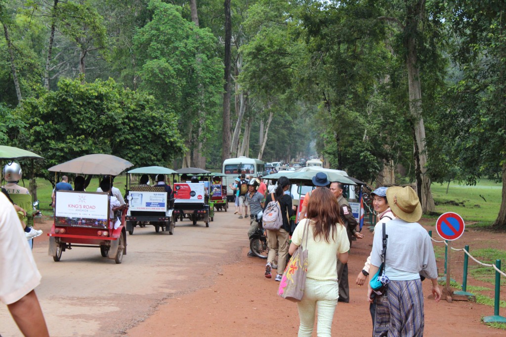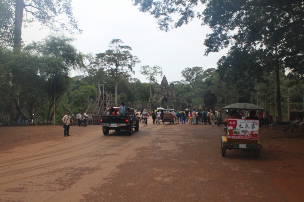 世界遺産であるアンコールワットにはそれこそ世界中から観光客が集まるので、門を通り抜ける車の列もすごい!