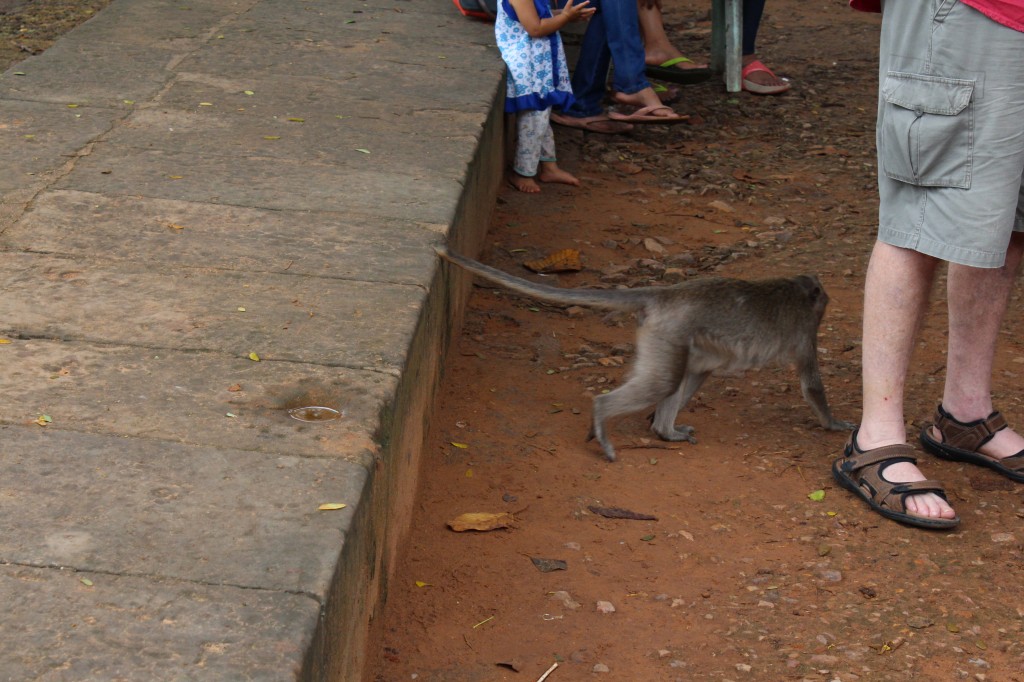 そこらへんに猿が歩き回っています。どうやら野生のようです。