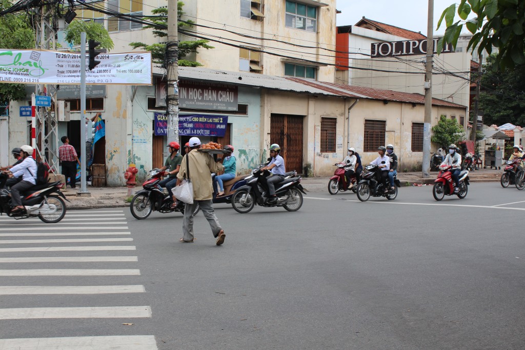 ベトナムの交通事情はこれまたかなりカオスで、信号はあって無いようなもの、警察に違反が見つかっても賄賂でどうにかするというワイルドスタイルです。道を渡るときは、飛び交うバイクの弾幕の中を命がけで突き進まなければなりません。