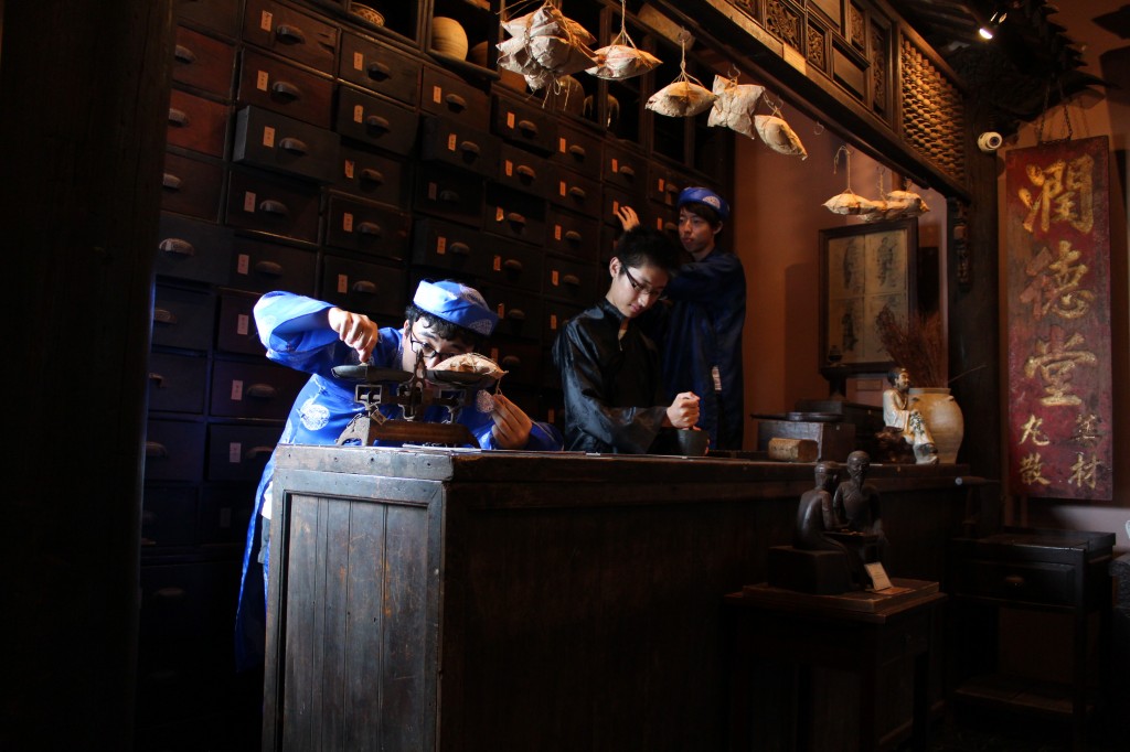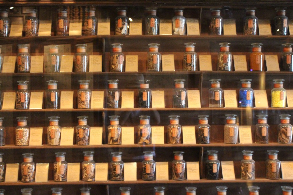 壁一面に生薬が飾られています。やはり東洋医学が盛んだったようで甘草なんかの有名な漢方も展示されていました。