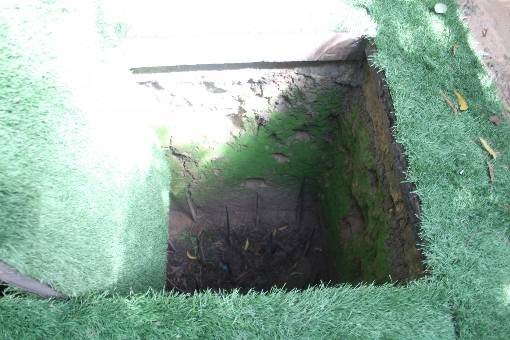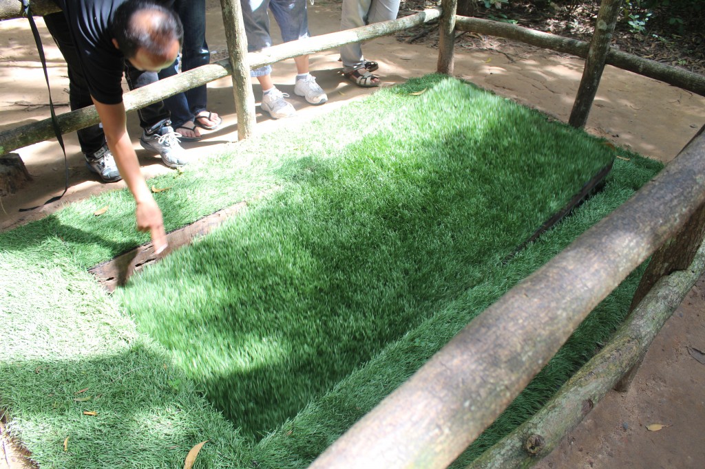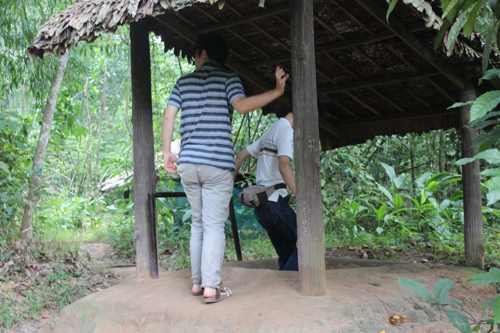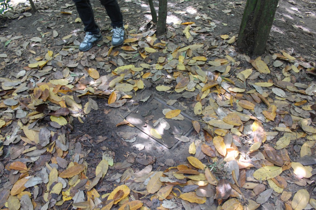 ここにはベトナム軍がアメリカ軍と闘った際のゲリラ戦の名残が多数のこっています。いわゆるベトコンたちは広大な地下トンネルを彫り、アメリカ兵たちに奇襲を仕掛けていたという。地下トンネルの入り口は落ち葉などで巧妙に隠されています。