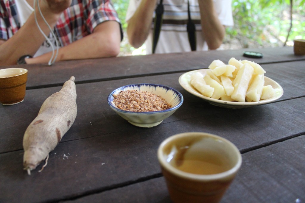 また、ベトコンたちの食事を体験することもできます。これはタロイモとい当時の兵士の主食です。お味のほうはなんというか味のうすいサツマイモみたいな感じです。塩を付けて食べるのですが、素朴な味で悪くはないですが毎日食べるものではないなぁという感想を抱きました。
