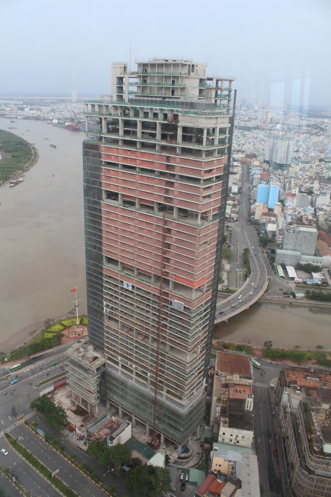 ホーチミン市にはひときわ目立つ建造物があります。ビテクスコ・フィナンシャルタワーです。このビルの49階にはサイゴンスカイデッキなるものが存在し、地上178mからホーチミン市内を一望できるとこのことで早速向かいました。