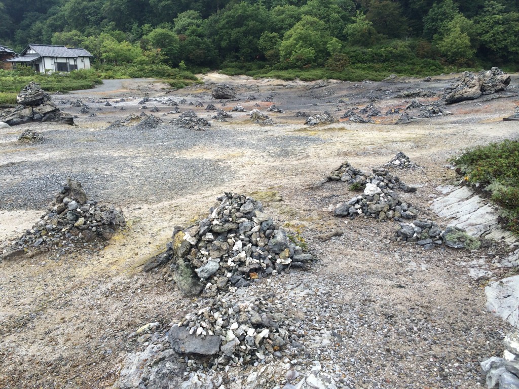 あまりにも有名な賽の河原。実際これ、誰が積んだんだろう?