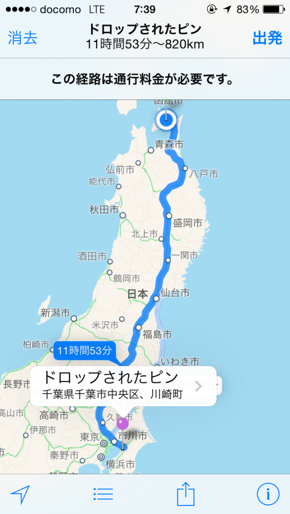 青森埼玉間を国道4号線、埼玉千葉間を国道16号線で結び、結果的に恐山8時発~千葉翌日3時着の合計19時間走ったことになります。
