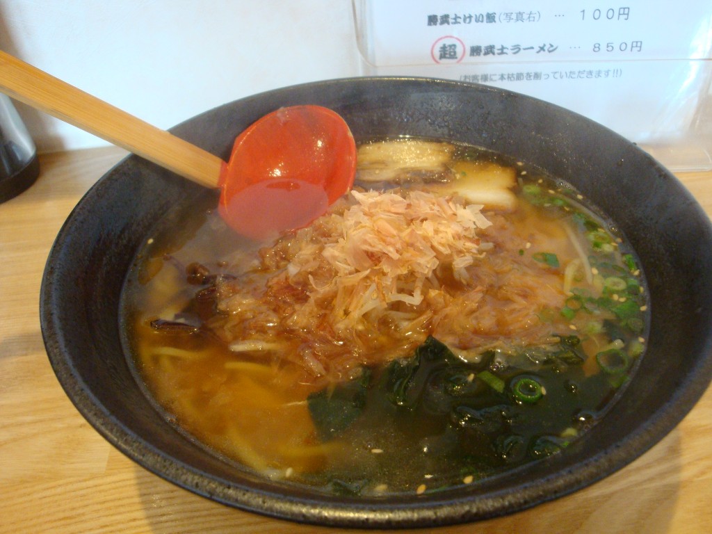 海に向かって歩いていると、有名そうなラーメン屋があったので昼飯を食べます。この勝武士ラーメンですが、鰹節のだしが効いていてあっさりながら強烈に美味しかったのを覚えています。あっさり系も侮れませんね。
