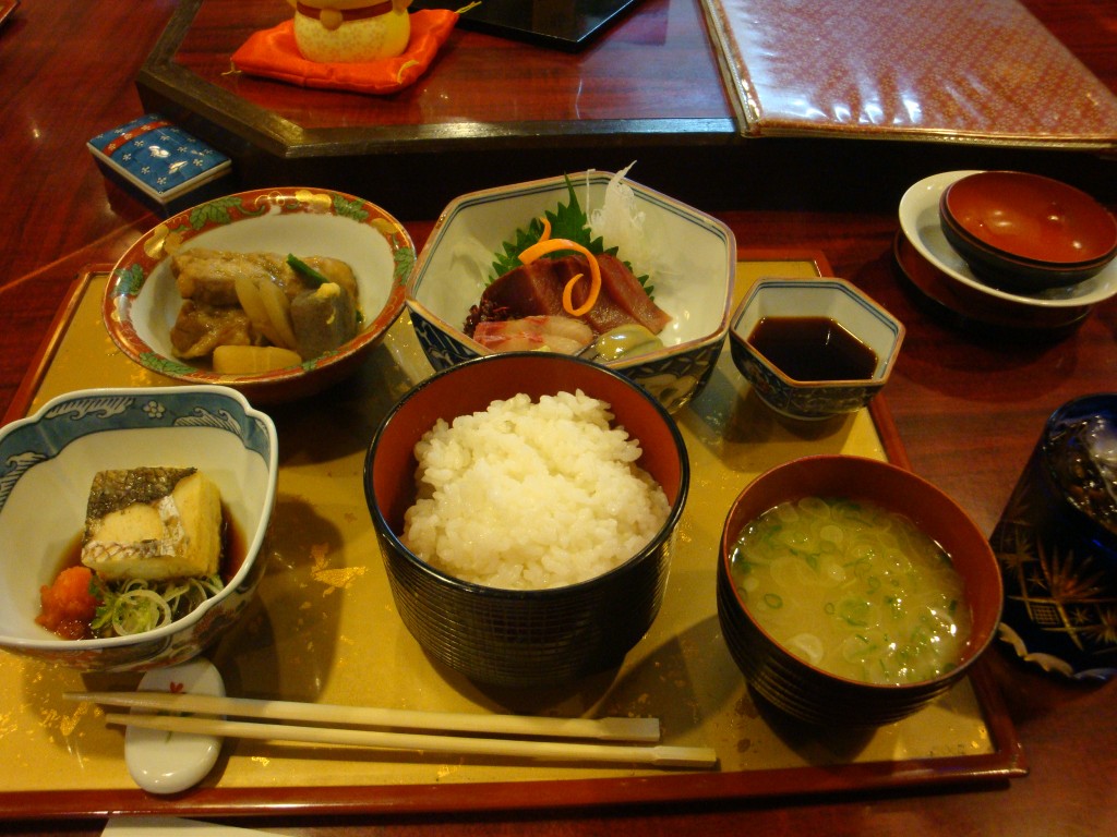 素泊まりだったので、近くの料理屋で夕食となります。薩摩御膳だった気がしますが、名産物をまとめて食べることが出来て良かったです。