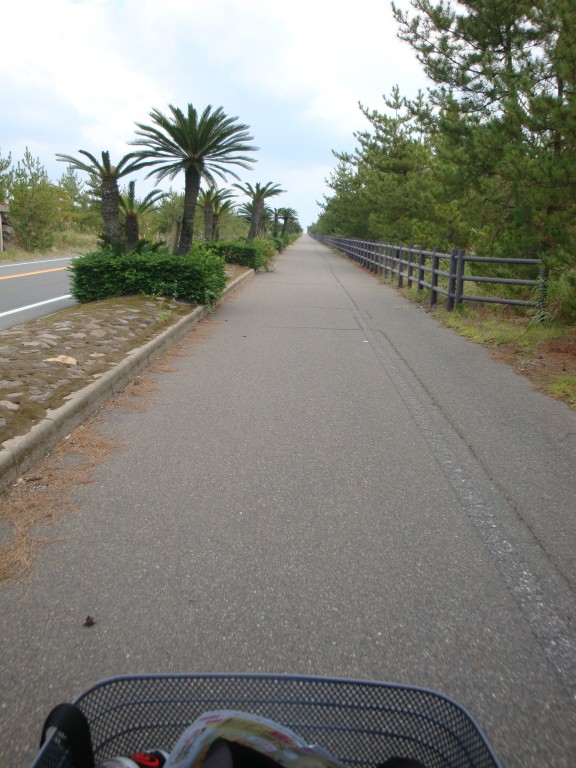 海に向かって歩いていきます。植生が南国っぽいのもさることながら、左手前にedion左奥にケーズデンキ右奥にヤマダ電機と、一体どういう都市計画なのか疑わしい道をすすみました。なお、パチ屋も3件並んでいた模様です。