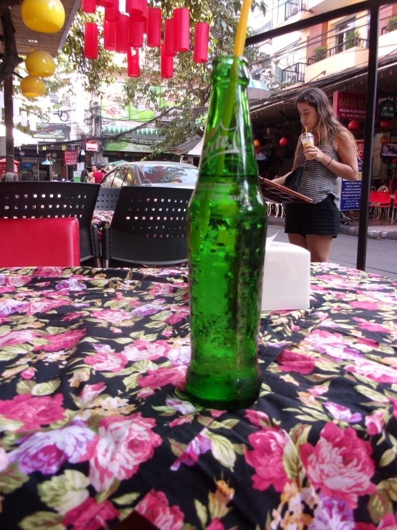 カフェに入り、スプライトを飲みながら喧噪を眺めます。日中の気温は32~34℃で、日本の冬からは想像もできないほどの暑さでした。