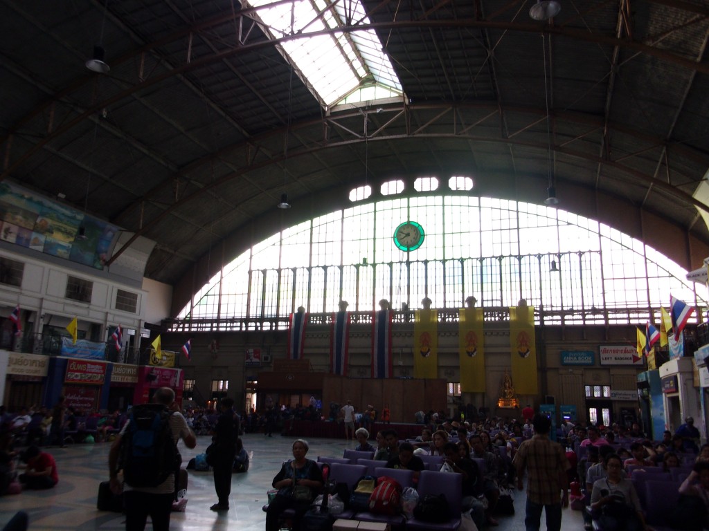 アユタヤへはクルンテープ駅から国鉄に乗っていきます。こちらは駅舎の模様で、各都市へ向かう人々で溢れていました。