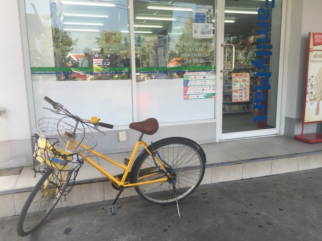 エキチカで自転車を借りて、古都の遺跡群を散策することとします。セブンイレブンが多い中に一矢報いるファミマでの一枚。
