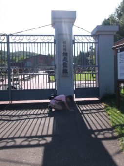 写真は、網走監獄前で地に伏して赦しを乞うているhaku君です。