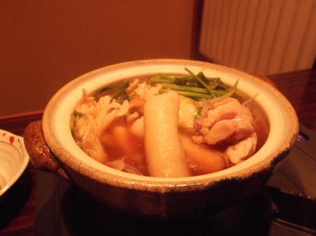 写真は、秋田と言えばの、きりたんぽ鍋です。