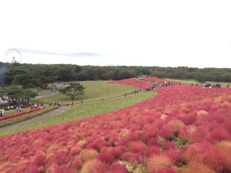 写真は、ひたちなか海浜公園のコキアになります。