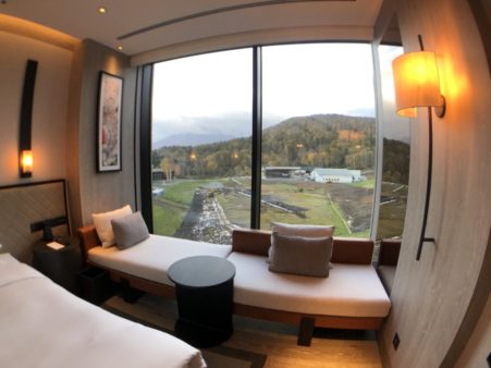 今、ニセコがアツい。外資系ホテルが続々オープンしており、今回宿泊したパークハイアットニセコHANAZONOもそのひとつ。65平米という圧倒的広さの部屋にはトイレ、洗面所、テレビがそれぞれ2つずつ用意され4人がけのダイニングテーブルも鎮座する。スキーを楽しみにきたファミリーをターゲットにしているのは明らかだ。シーズン中は一泊15万程度かかる部屋がオフシーズンには5万程度で宿泊できるが、部屋から見える景色は土の山と工事の車両で味気ない。冬には雪に染まった羊蹄山が美しいはず。
