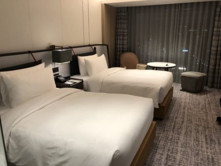 2020年4月にウォーターズ竹芝の上にオープンしたマリオット系列のホテル。芸術系(勝手に命名)であり、ロビーや客室内には美術品や凝ったアメニティーなどが用意されている。なによりも客室内にピアノが置いてあるのが特徴的ではあるが、あまり意味はない(Bluetoothスピーカーの代わりになるが、別途BOSEのBluetoothスピーカーが用意されているのでやはり意味はない)。近くにタワーマンションなどが林立するためカーテンを開けて開放感を楽しむとプライバシー的な意味でややそわそわすることだろう。朝食会場からは都内の摩天楼が一望できて眺めがとてもよかった。